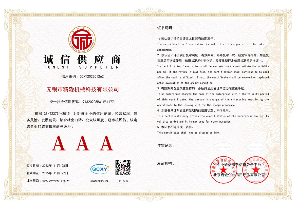 2. 該認證 / 評價實行復審制度,有效期內(nèi),每年復審一-次。經(jīng)復審合格的,加蓋復審章后可繼續(xù)使用,信用狀況發(fā)生變化的,需要重新評定信用狀況并更換證書。